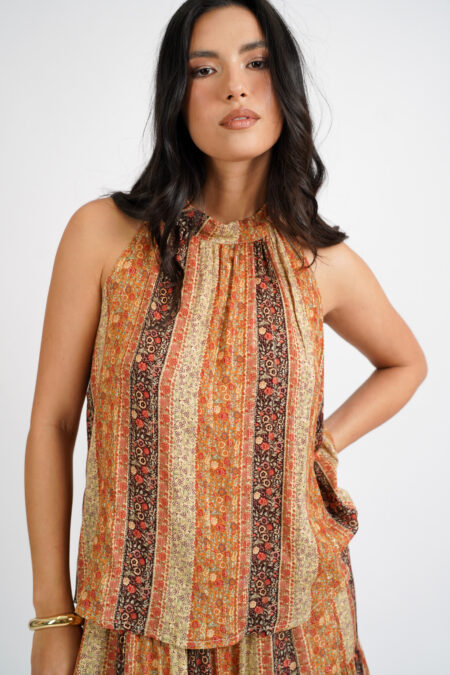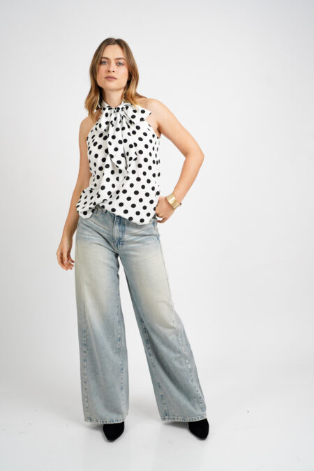- Blusa sin mangas lazo en el cuello