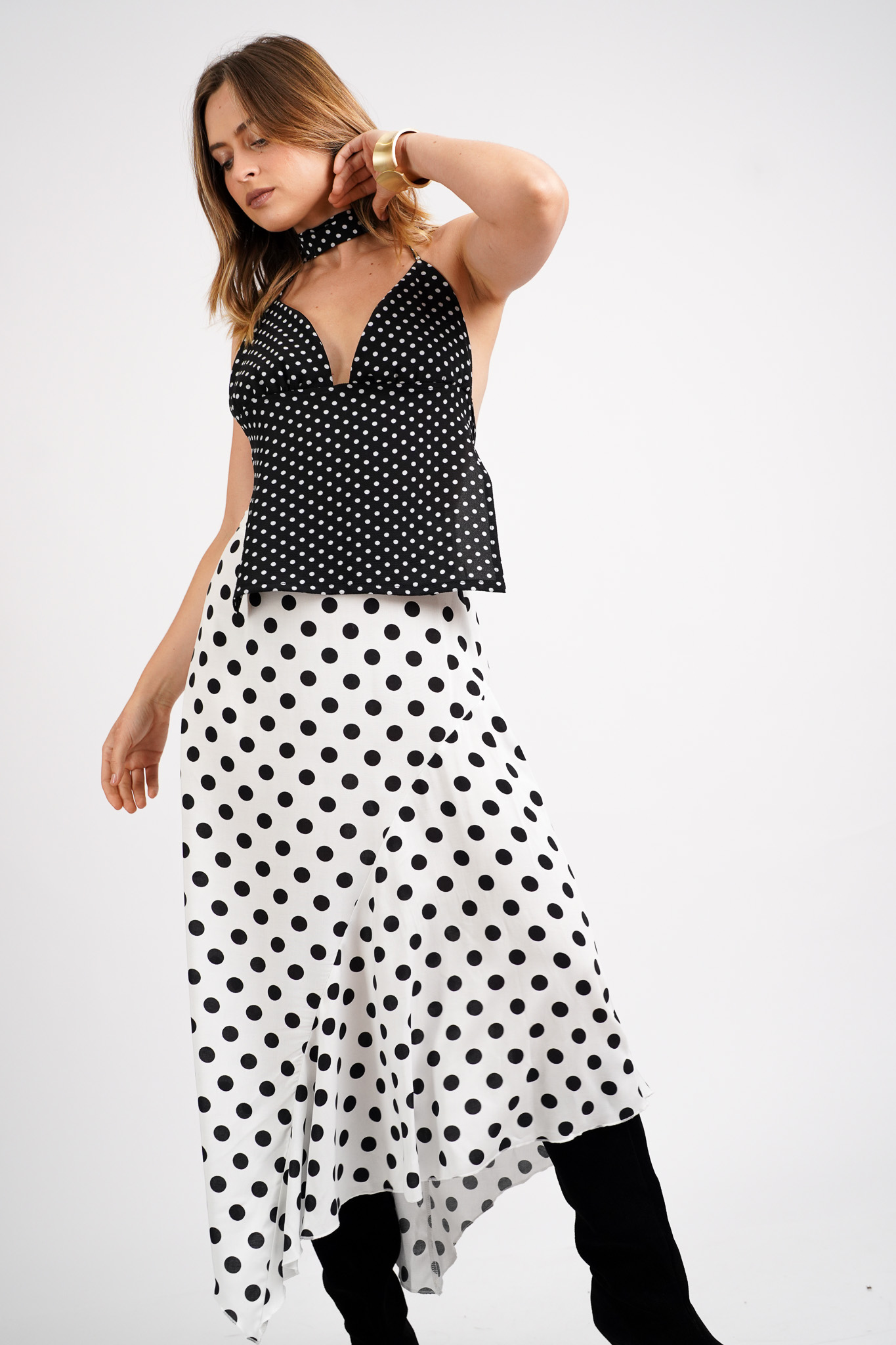 | Color | Blanco lunares negros |
