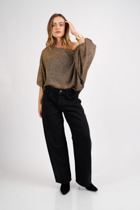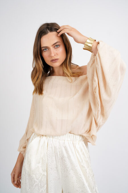 - Blusa con cuello asimétrico y mangas bolsudas