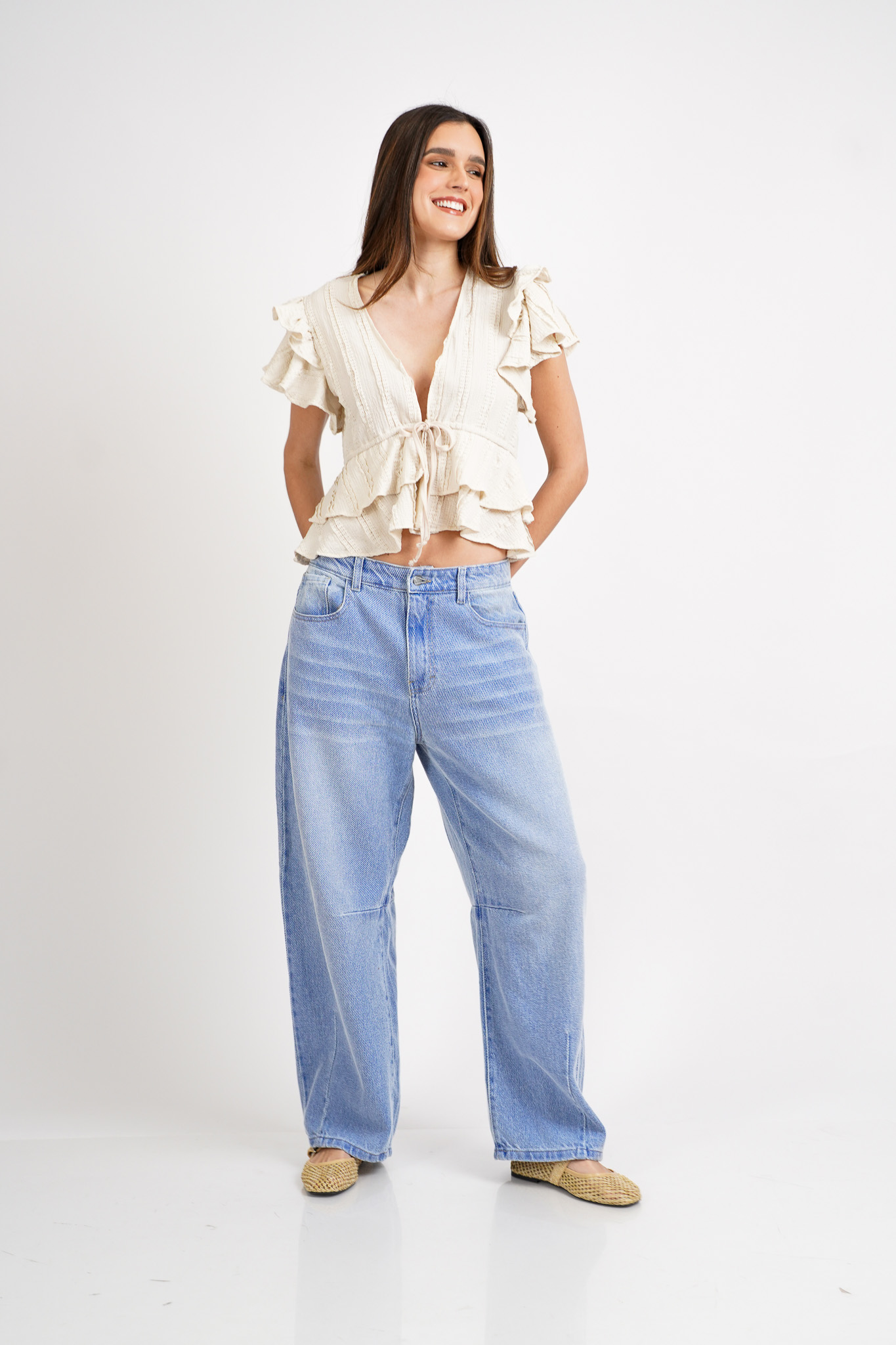 • Cintura con boton, cierre y elástico